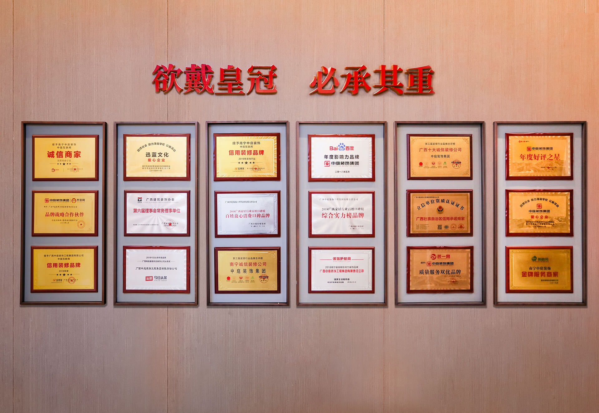 中庭裝飾集團總部正式啟用裝一網2017~2018年度·南寧站“質量服務雙優(yōu)品牌”