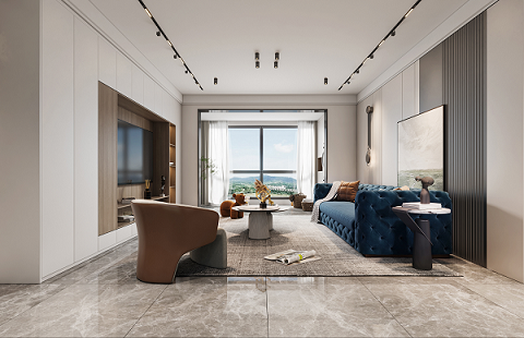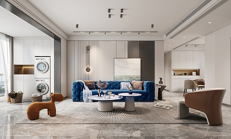 使用更親近自然的棉、麻、木搭配黑、棕、白、灰色,在裝飾上極度的克制,給人高品質(zhì),舒服的感受。削弱復(fù)雜造型和色彩對(duì)人情緒的影響,反而產(chǎn)生了治愈的力量。克萊因藍(lán)沙發(fā)的點(diǎn)睛之筆,顯得整個(gè)空間更加自信,給人傳遞高級(jí)的視覺感受。